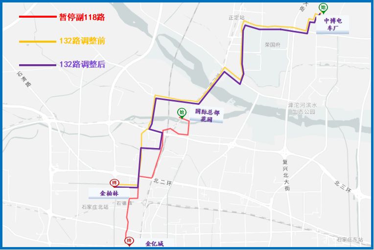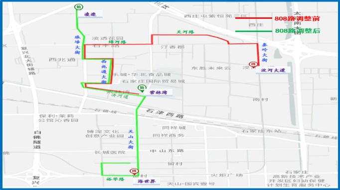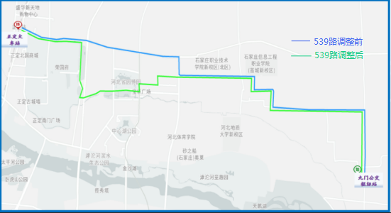 3.调后路径:凌透西街、珠峰大街、洨河大道、西兆通大街、珠峰大街、济河道、天山大街、裕华路、珠峰大街(上行)、淮河道(上行)。