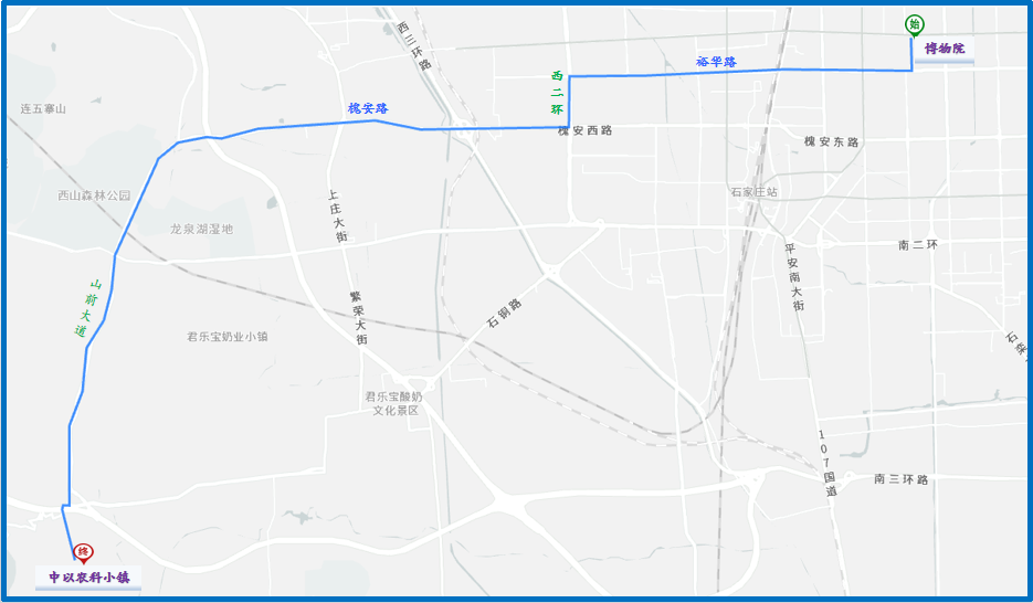 2.运营路径:东大街、裕华路、西二环、槐安路、山前大道。